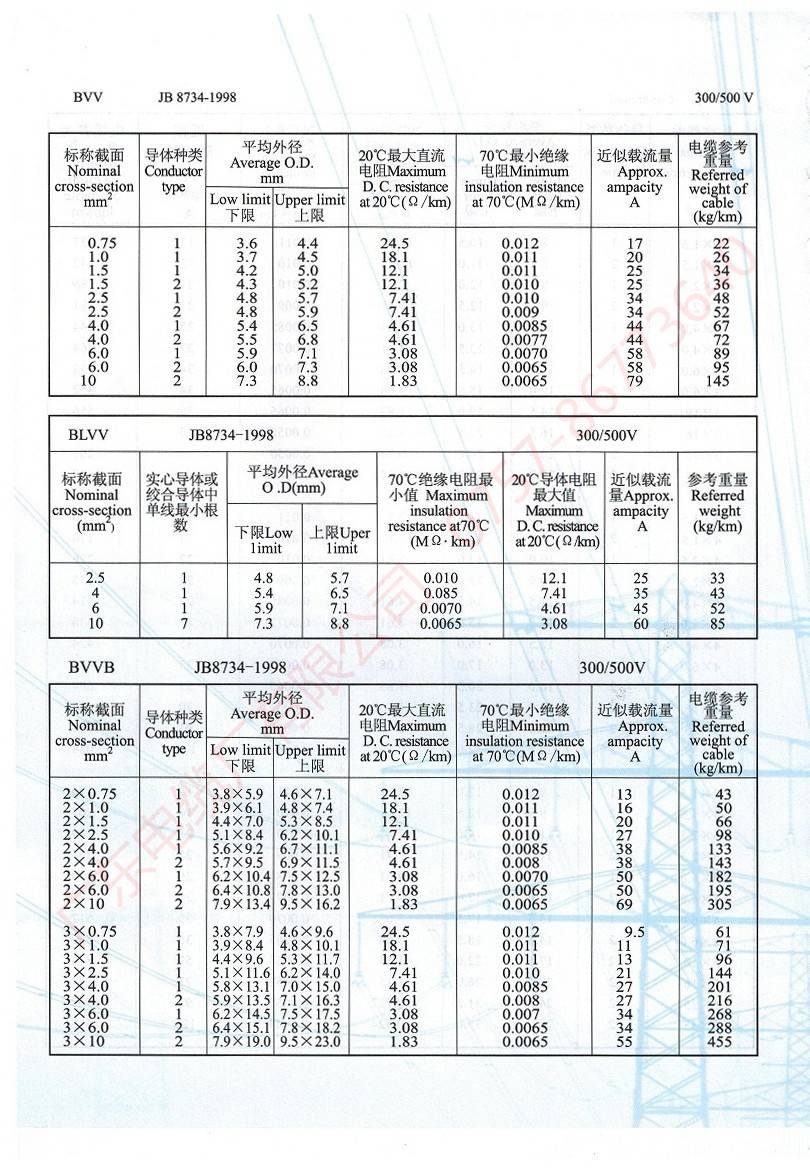 450 750V及以下聚氯乙烯絕緣電纜(電線)